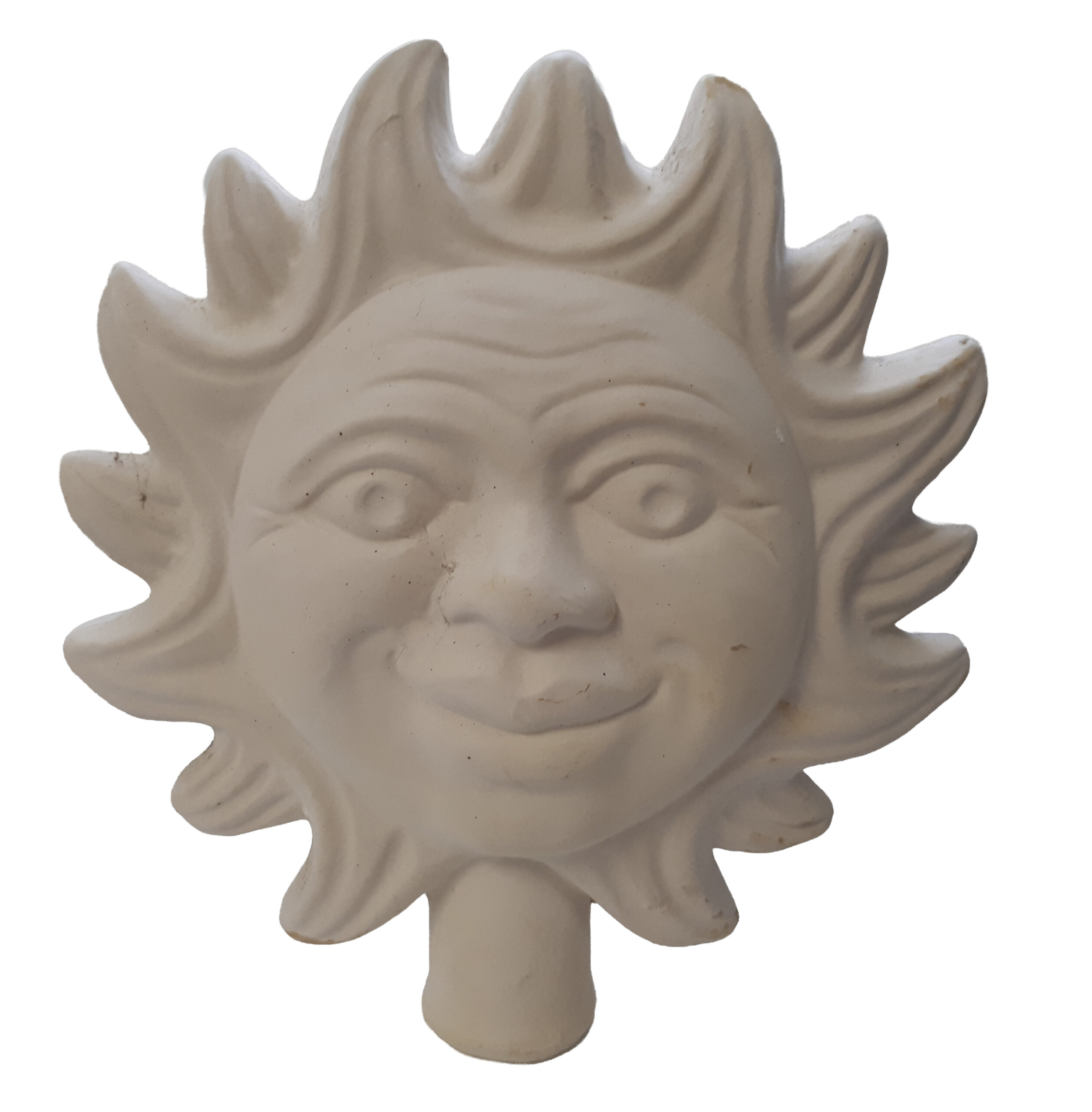Gartenstele-Aufsatz, Sonne mit Gesicht, 19 cm, Helle Irdenware, unglasiert