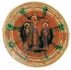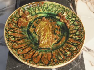 Reliefteller aus Irdenware – wo Handwerk, Glaube und Natur zu Kunst werden.