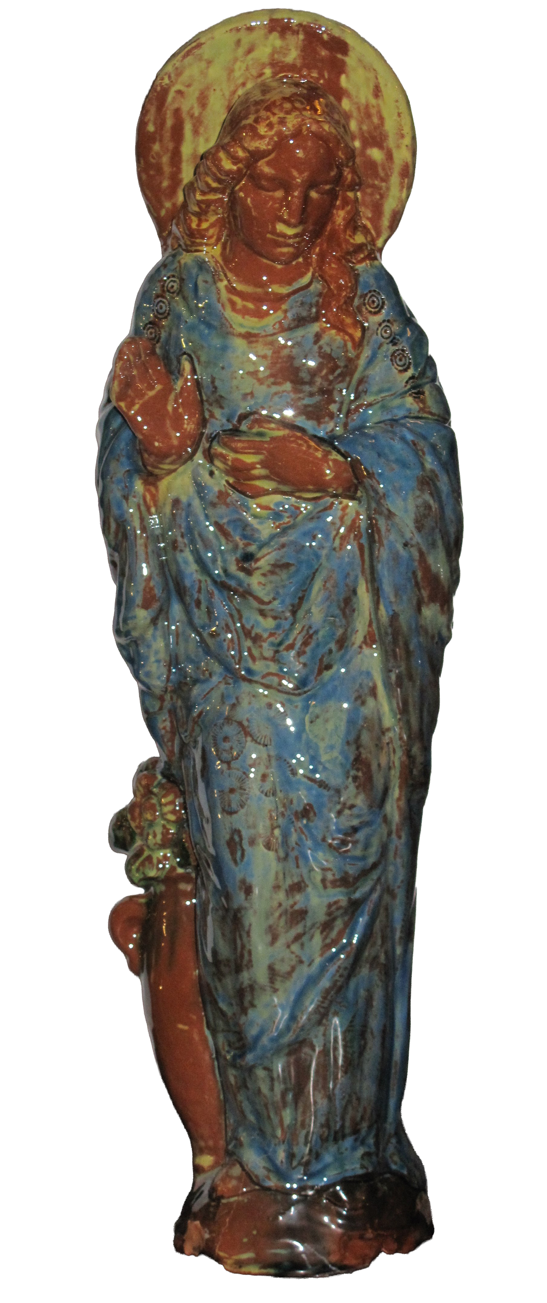 Unsere Heiligenfiguren und Madonnen werden gefertigt auf der Basis der originalen Gipsformen der Töpferei Plein-Wagner in Speicher (Eifel) — Formen, die teilweise über 100 Jahre alt sind und ursprünglich für Steinzeugproduktion ausgelegt wurden. eifelkeramik.de Heute setzen wir diese Formen für Irdenware ein, überziehen die Figuren mit farbigen Engoben und versiegeln sie mit einer Glasur — eine Technik, die die traditionelle Keramikkultur am Niederrhein mit der Eifeler Töpfergeschichte verbindet.